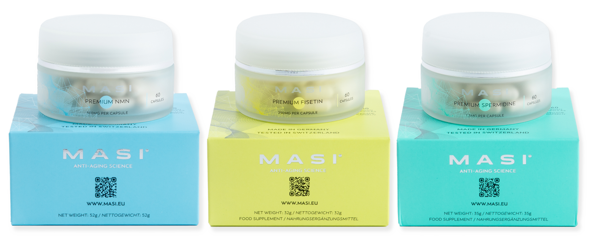 A powerhouse of rejuvenation, thoughtfully combining NMN, Spermidine, and Fisetin to amplify your anti-aging efforts. NMN directly boosting NAD+, remaining as the foundation, followed by Spermidine enhancing this effect by promoting cellular autophagy, the body's rejuvenating process and Fisetin adds to this dynamic trio by targeting age-related cellular inflammation and stress.